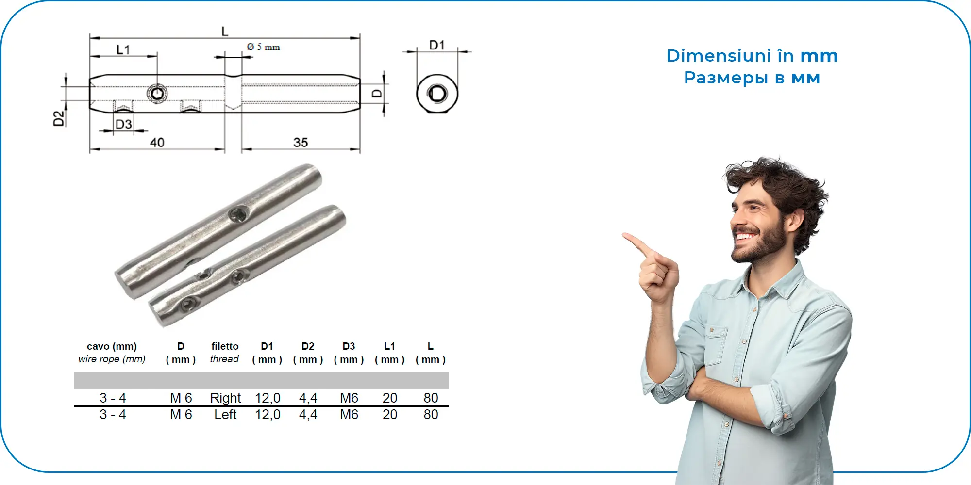 Наконечник троса со стопорными винтами RH art.8451/A4